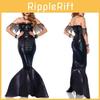 Black Lace Mesh Witch Tailcoat Dress Costume For Halloween Party Events Cosplay