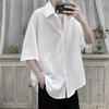 Men Spring Top Men's Casual Loose Fit Ice Silk Shirt with Turn-down Collar Half Sleeves Stylish Button-up Top for School Dating