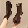 New Women Ankle Boots Fashion Female Square Heel Low-Heel Shoes Lady Boots Leather Woman Low-heel Keep Warm Ankle Boots