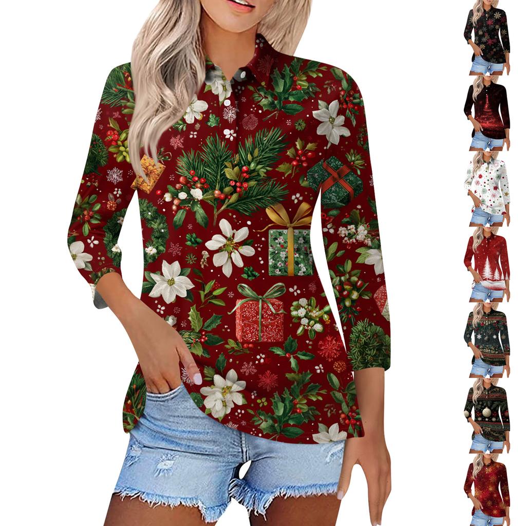 Women's Fashion Casual Button 3/4 Sleeve Vintage Print Lapel Top