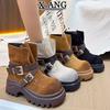 Leather Martin boots women's muffin thick sole heightening small short boots autumn and winter new casual high-top shoes women