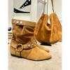 Sheepskin Version Retro Rivet Flat Bottom Short Tube Western Cowboy Boots Women's Short Boots Stacked Martin Boots