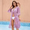 Women'S Boho V-Neck Butterfly Embroidered Long Cardigan, 100% Polyester Knit Fabric, Summer Beach Top with Belt Detail, Short Sleeve Lace Blouse