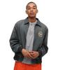 Twill material made from sustainable lyocell fiber derived from plants. Since it is made of twill, we use one with a stand-up texture that gives it a more rustic look. This fabric is made of heavy lyocell, so you can enjoy the feeling of falling off, creating a silk-like luster that makes you look expensive. The lining is a champagne gold lining that was often used in vintage. The back contains the words OUR PAST IS OUR FUTURE, which is the belief of the home country, and the artwork of a car that travels back in time.    Colors may look different from the actual product depending on your computer monitor. We apologize for the inconvenience, and thank you for your understanding. There may be slight differences in the size chart due to the characteristics of the product's fabric and weave. Thank you for your understanding. The product in the image is a sample. The actual product may differ slightly in terms of specifications and processing.