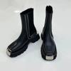 Fashion Metal Stitching Fashion Square Toe Boots 2025 Women's Style Thick Sole Motorcycle Style Slip On Short Boots Black Real Leather