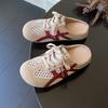 Summer Women's Woven Half Slippers 2025 New Hollow Breathable Walking Shoes Outdoor Fashion Slip-on Flat Shoes Zapatos De Mujer