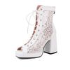 FOREADA Women Hollow Mesh Sandals Peep Toe Thick High Heels Platform Lace-up Zipper Sexy Jazz Dance Boots Ladies Shoes Summer 46