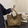 Leopard print canvas bag women's large-capacity autumn and winter versatile shoulder bag casual college student tote bag