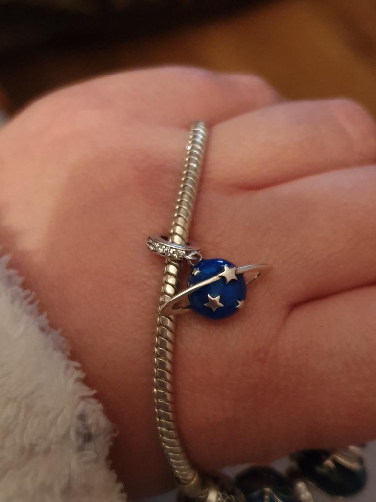 Bamoer 925 Sterling Sølv Hemmelig Planet Måne Stjerne Anheng Blå Emajle Charms Passer Charm Armbånd