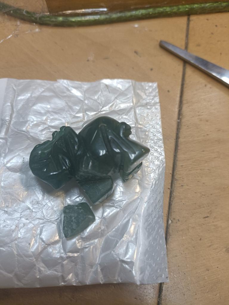 Dessverre ble begge elefantene lagt i samme pose.. Hadde de vært pakket inn med noe, er jeg sikker på at de hadde kommet helt. Det ville vært en så flott jobb, og det er synd. Gi det videre slik at det gode arbeidet ikke blir ødelagt neste gang det sendes! Prøv å lim den.