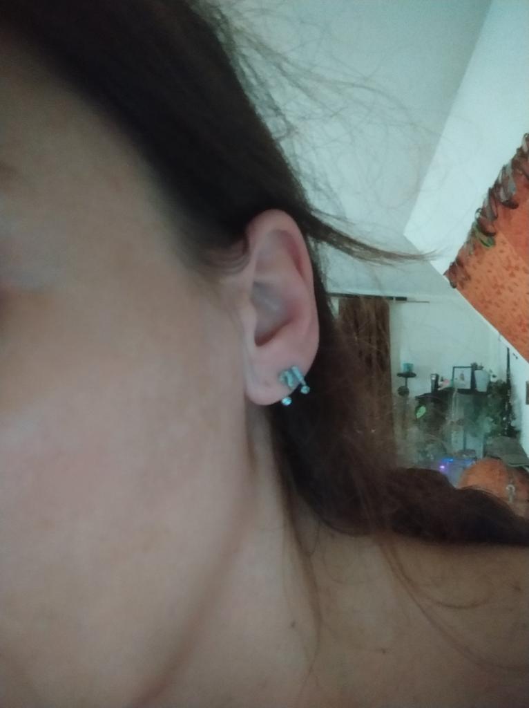 Vakre øredobber. Bakdelen, spissen, kan festes til øreproppen i tre forskjellige høyder og dermed tilpasses øret.