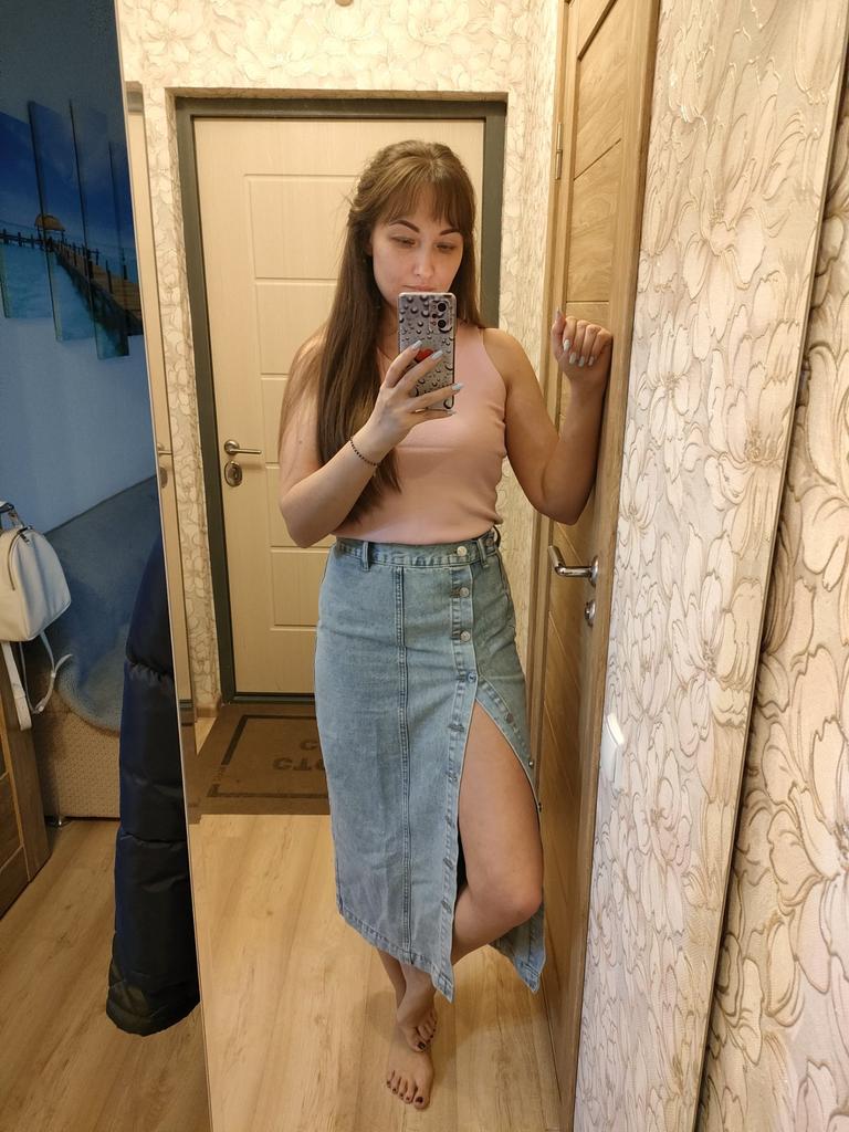 Generelt er størrelse S for en midje som ikke er mer enn 70, hoftene mine 99 cm passer lett. Det var tungt å puste, men så vokste kanskje skjørtet litt. Jeansene er veldig tykke, gode, denne typen skjørt er mote nå, jeg anbefaler dem