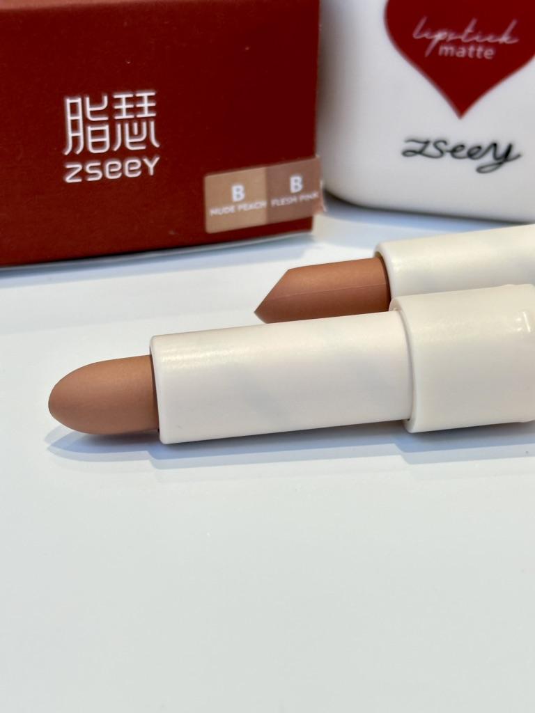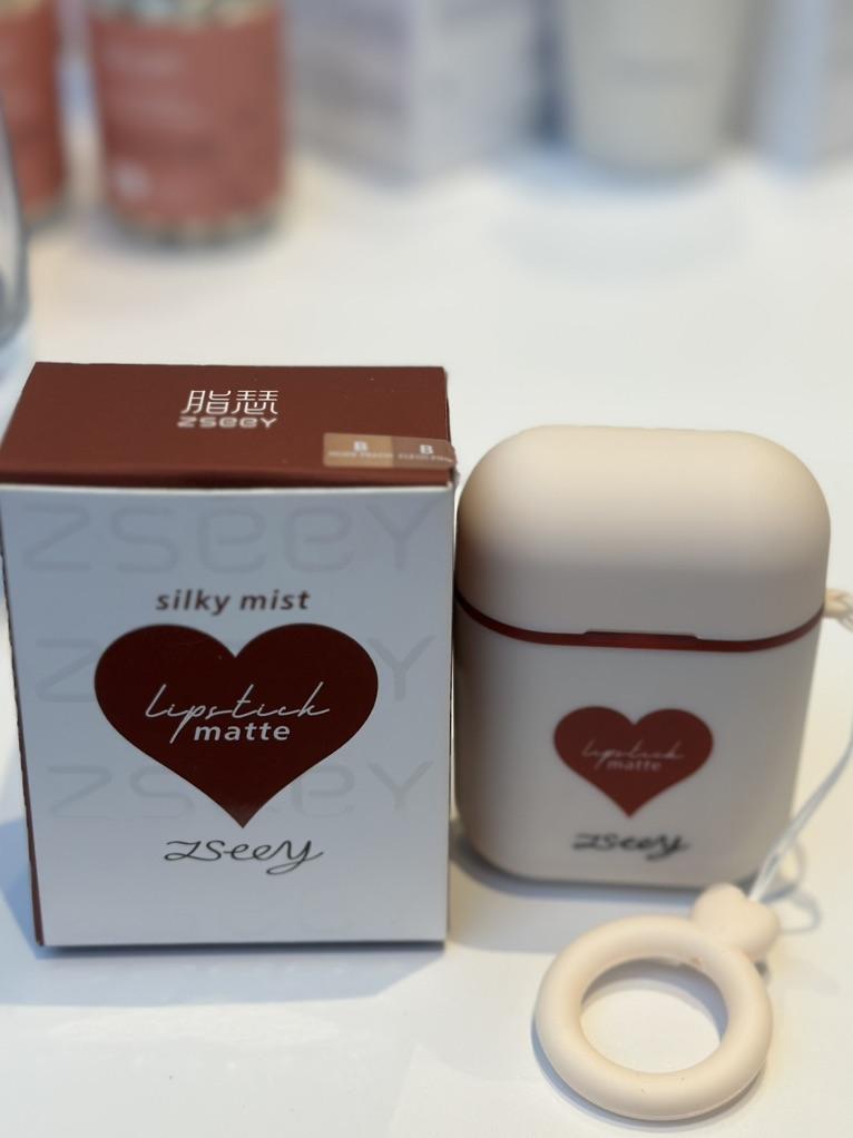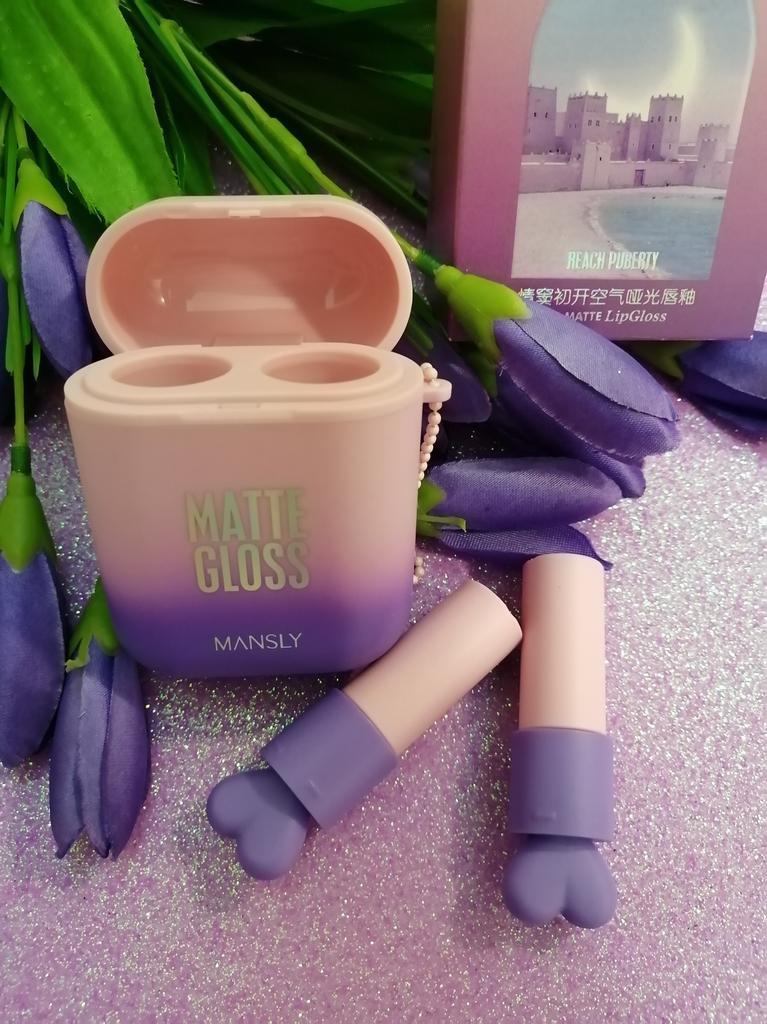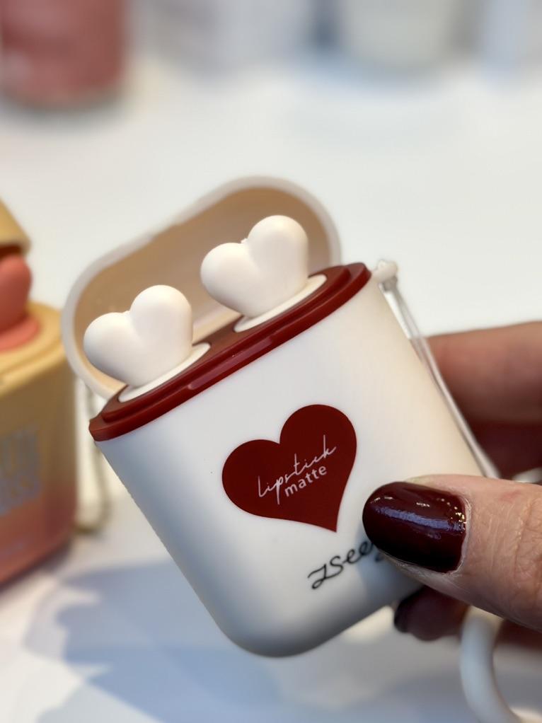 HENGFANG 2Sett/Lot Hodetelefoner Love Icon Double Tube Non-stick Cup Langvarig vanntett leppestift matt øretelefonform Leppestift naken røde lepper Makeup