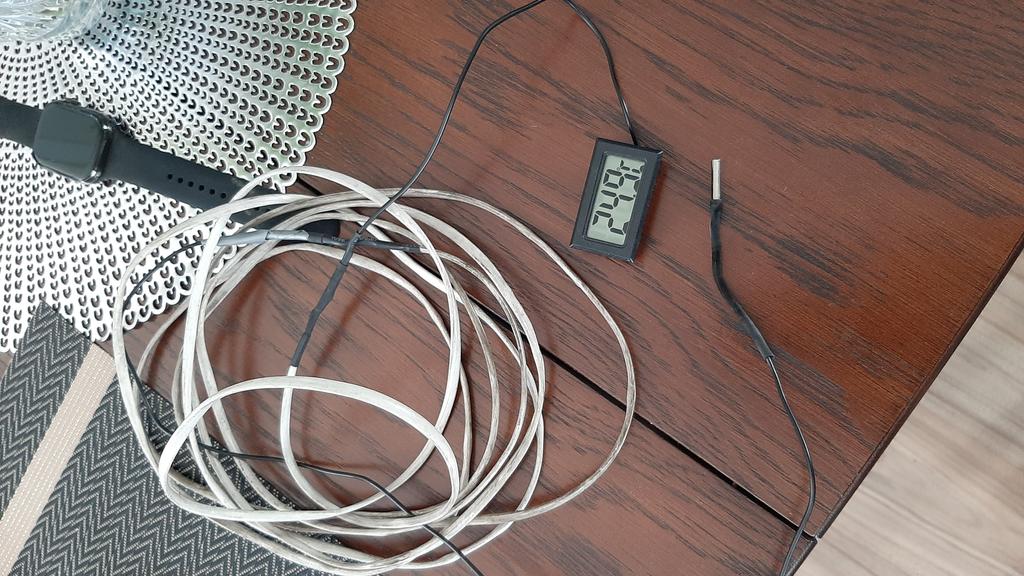 Det hele er annerledes. Selv om tideler av grader. Norm. I kjelleren, i caissonen og under undergulvet. Jeg strekker ut ledningen og går videre. Jeg har en ledning fra telefonen min. Sensoren har ingen polaritet.