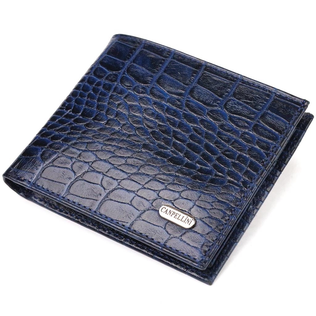 Стильный мужской кошелек в два сложения из натуральной фактурной кожи с тиснением под крокодила CANPELLINI Purse 21580 Синий