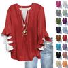 Høstmote flaggermusermet ensfarget plussstørrelse løs o-hals 3/4-ermet casual bluse topp for kvinner