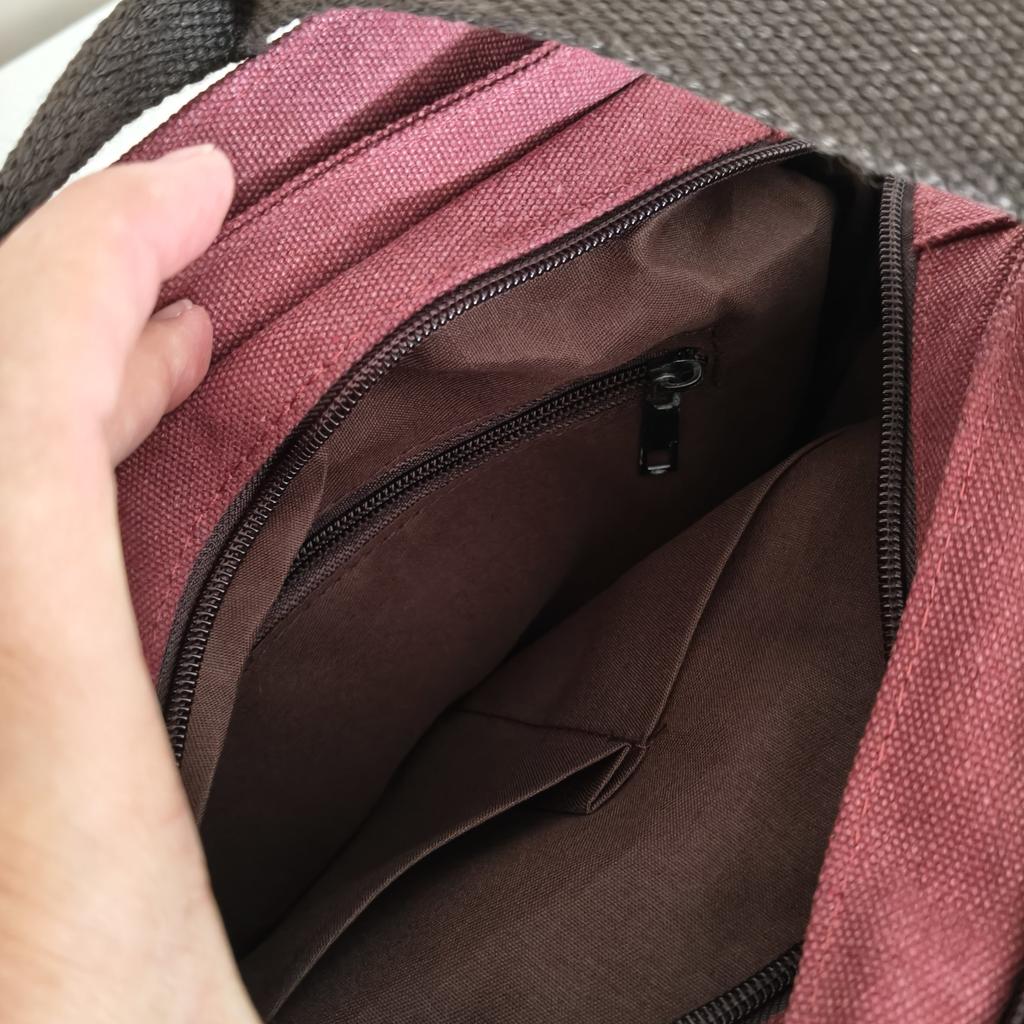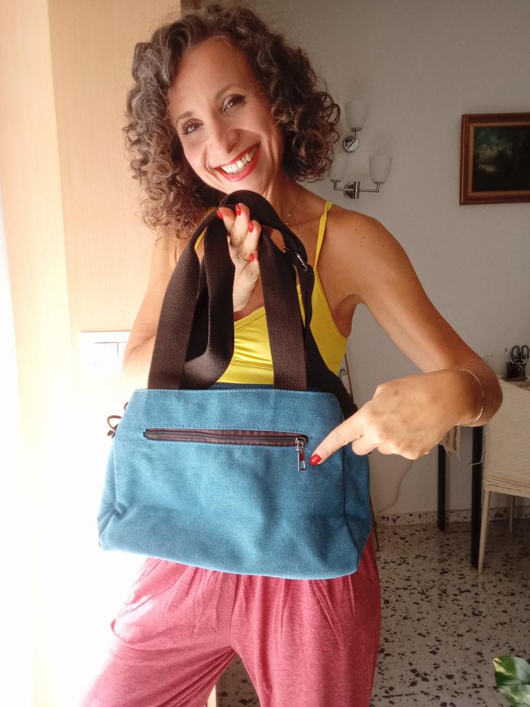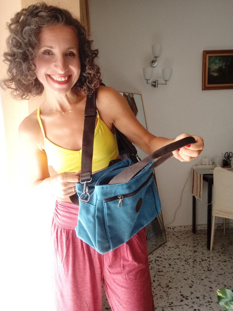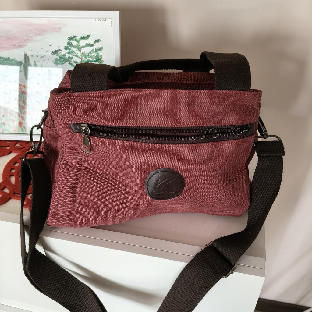 LERRETSVESKE veske i lerretstype Canvas, kan bæres i hånden og over skulderen. Stoffet er av utmerket tykkelse, helt sikkert veldig slitesterkt spesielt for daglig bruk. Skulderstroppen er avtakbar og utstyrt med praktiske karabinkroker, Vesken har hele tre rom med glidelås, hvert rom har innerlommer, glidelåsene fungerer perfekt. Tilgjengelig i 5 farger, Materiale: stoff. Sømmene er pene, ingen vond lukt, ingen feil funnet. Ankommet i Italia på 18 dager med sporet forsendelse. Emballasje: cellofanfolie. En veske av utmerket kvalitet til en utmerket pris. Superanbefalt kjøp 👍