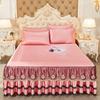 Blondertilpasset laken Luksus sengetøysett Romantisk ismatte sammenleggbare broderte laken Lin Sengetøy Queen Sengeteppe med skjørt