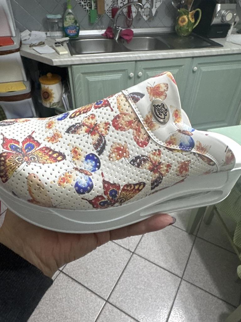 - Takket være den spesielle bunnformen på sålen glir den ikke på vått underlag. Den gir luftstrøm takket være hullene på siden.