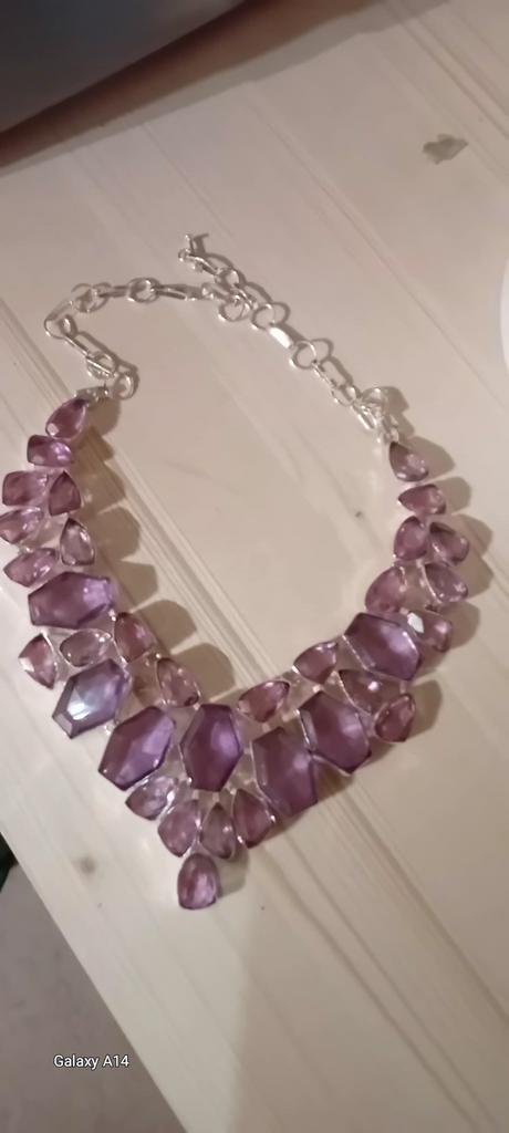 Naturlig Rosa Ametyst Edelsten 925 Sterlingsølv Smykke Halskjede 18" k3V30