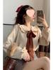 Japanese Girls' Long Sleeved Shirt with 2022 New Lace Bow Knit Base, Two Tone Autumn and Winter Top for Women