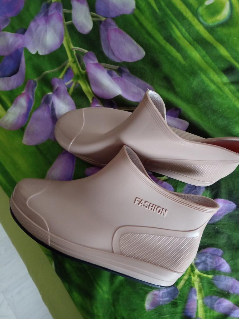 Korte vanntette sko for kvinner i ensfarget, lave regnstøvler med sklisåle, regnsko for utendørs bruk