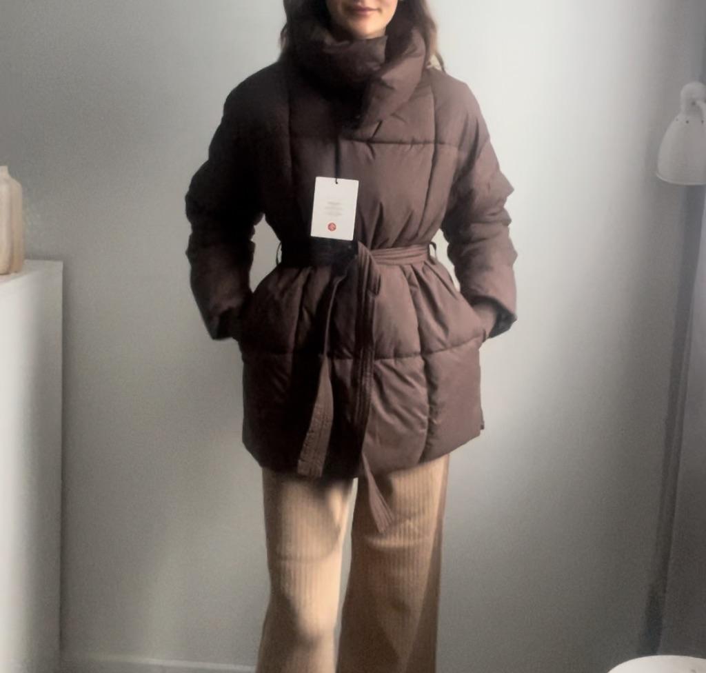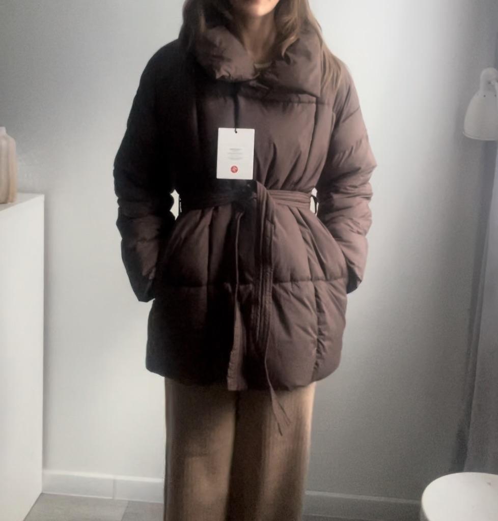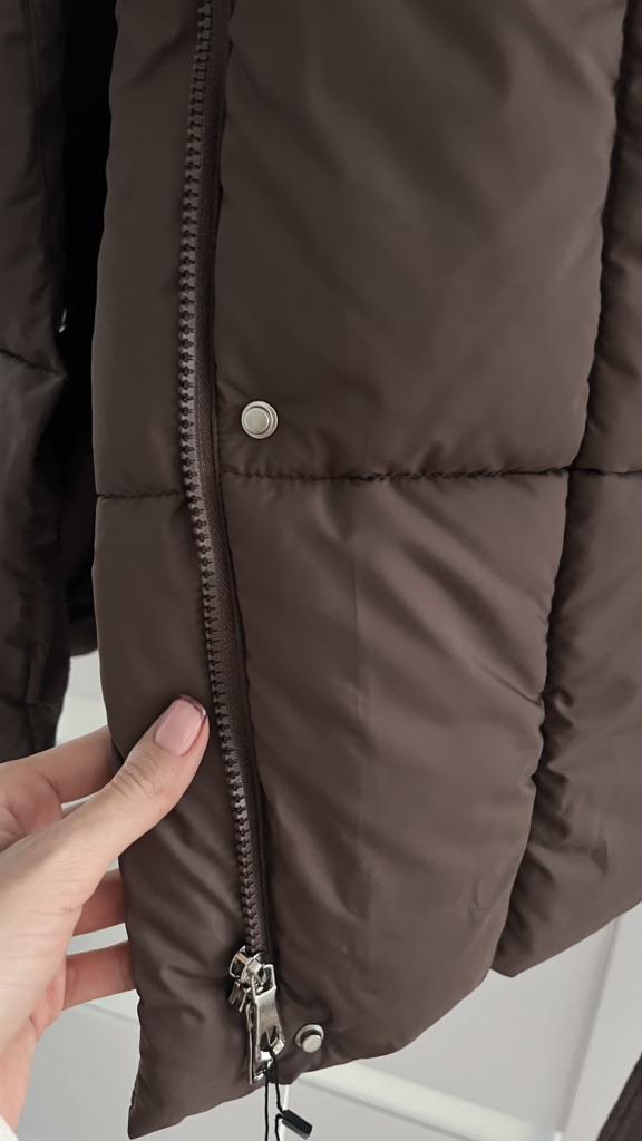 Denne parkasen ser veldig koselig ut og passer godt til den kalde årstiden. Sjokoladefarge gir eleganse og allsidighet - den kan enkelt kombineres med forskjellige klesstiler. Materialet er behagelig å ta på, polyester gir slitestyrke og motstand mot slitasje. Fyllet laget av bomullsfluff isolerer varmen godt, så parkasen passer for høst- og vinterperioden. En komfortabel hette gir funksjonalitet og beskytter mot vind og regn. Stilen med belte fremhever midjen, noe som gir figuren et mer raffinert utseende. Lommene er dype, praktiske, noe som er et pluss for hverdagsbruk. Totalt sett er dette et godt valg for de som leter etter stilig og behagelig yttertøy for kjøligere vær😌