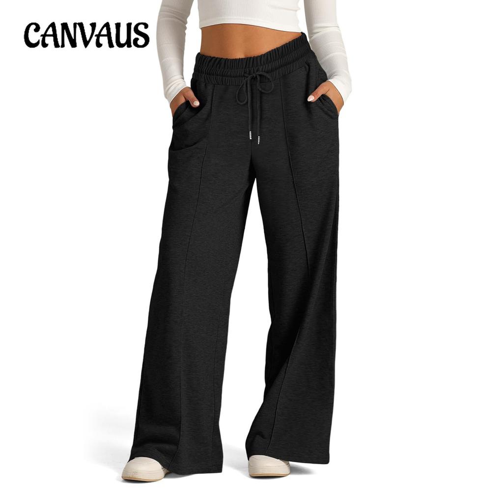 Høst og Vinter Pluss Størrelse Ensfarget Knytebelte I Midjen Mote Vide Ben Casual Dame Lang Bukse Joggebukse