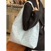 Green Cloth Bag, Women'S Fresh Literary And Artistic Large-Capacity Plaid Portable Messenger Bag, Versatile Commuter Bag