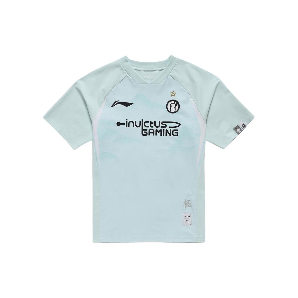 Li Ning Sports Lifestyle Series Logo Letter V-Neck Short Sleeve Raglan T-Shirt Unisex T-Shirt Soft-Water-Blue ATSU693-1