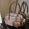 Woolen portable bowling bag women's 2025 new trendy retro college style plaid pattern versatile shoulder messenger bag