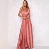 Women Summer Strap V Neck Backless Bandage Satin Solid Color Big Hem One Piece Dress
