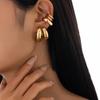 ins wind round tube hollow ear clip stud earring set women's C-shaped glossy metal wind ear buckle ear jewelry