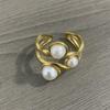 Elegant 18k Gold Stainless Steel Open Ring with Hammered Texture and Inlaid Pearl Bead