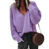 Damemote V-hals Løs Pullover Ensfarget Langermet Genser Topper