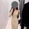 Autumn Vintage V-neck Waist Design Slim-fitting and Thin Hip Skirt Long-sleeved Women's Knitted Dress