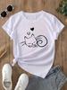 Cat Pattern Loose Cotton T-Shirt Short Sleeve Round Neck Women 2d Print Tops