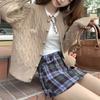 Autumn crew neck single-breasted cardigan sweater women's twist design sense knitted women's college style jacket