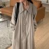 Women's Korean Fashion Polo-Neck Blouse: Solid Color, Long-Sleeve Cotton Long Shirt for Spring Casual Wear