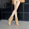 Fashion Design High-end Retro Pleated Pointed Toe Mid-Calf Women's Boots Suede Short Boots Fashionable Autumn Winter Style Rubber Sole
