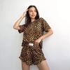 Kvinner Pyjamas Natttøysett med rund hals Kortermet T-skjorte og shorts Brun leopardtrykk Uformelt Komfortabelt salongtøy