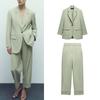 Autumn and Winter New Women clothes Houndstooth Blazers 9320565 High Waist Casual Wide Leg Pants 9316565