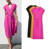 Summer New Product Women's Clothes Seaside Vacation Style Cotton V Neck Pleated Draped Shoulder Short Sleeve Length Dress 2965260
