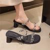 French summer 2025 new fairy skirt beach crystal heel thick heel open-toed cool slippers women's sandals