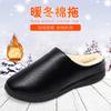25 new winter women's cotton slippers home warm piled thickened pu waterproof soft sole non-slip middle-aged and elderly mother shoes