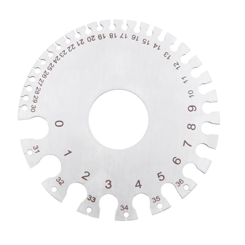 Specifications: Material: Stainless Steel Color: Silver Standard: 0~36 Imperial Scale: 0.3125" - 0.007" Outer Diameter: Approx. 84mm/3.31" Weight: 73g Quantity: 1 PC. Package Included: 1*Wire Gauge 1*Cover Bag with Button Note: Due to different monitors, the image may not reflect the actual color.