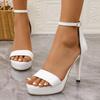 Fashion Sexy Dress Wedding Shoes Women Ankle Strap Peep Toe High Heel Sandals White Super High Heels Buckle Snake Pattern Woman Pumps