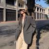 Elevate your wardrobe with this sophisticated dark gray suit jacket, part of the Autumn 2025 Collection. Expertly crafted from high-quality polyester for both the exterior and lining, this chic jacket ensures comfort and durability. Its timeless design and tailored fit make it a versatile addition to your professional and casual ensembles, perfect for layering over blouses or pairing with trousers for a polished look.