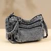 Vintage Denim Skulderveske Dame Crossbody-veske Flerroms Mamma-veske