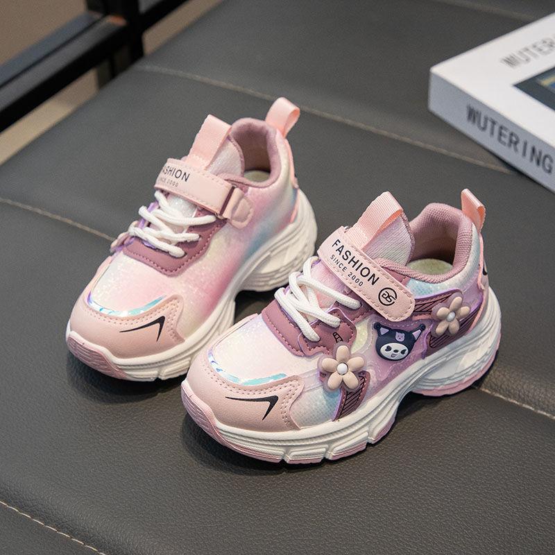 Girls' sports shoes leather surface autumn and winter new lightweight soft sole non-slip running shoes children's shoes casual dad shoes
